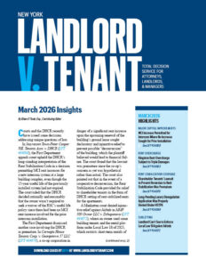Each month Landlord v. Tenant provides approximately 50 summaries of recent landlord-tenant court cases and agency decisions from more than a dozen courts and agencies, including the NYS Division of Housing and Community Renewal (DHCR) and NYC Environmental Control Board. Landlord v. Tenant takes readers through each dispute, streamlining research and arming attorneys with the legal ammunition they need, quickly and easily.